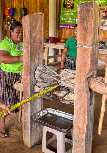 After exploring Nim Li Punit, we'll journey to the Indian Creek Maya Women's Group, where ancient traditions come alive in the hands of modern Maya artisans. You'll immerse yourself in authentic Maya culture, food, and traditions through hands-on experiences: extract cane juice the traditional way, assist in preparing a traditional Mayan lunch, grind cacao and corn on a metate, and watch skilled weavers create beautiful baskets. Learn about Maya traditions and lifestyle directly from the women who preserve them, and enjoy a captivating cultural dance performance. After the tour, browse unique handcrafted items in the Indian Creek Maya Women's Group Gift Shop.